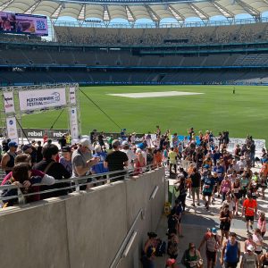 Experience the thrill of running onto the hallowed playing surface at Optus Stadium to cross the finish line. See yourself on the big screen to the cheers of your family and friends in the stands!